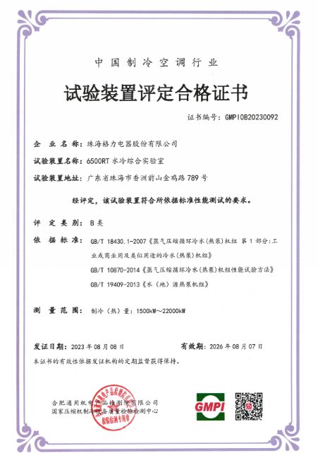 近日,格力電器6500RT水冷綜合實(shí)驗(yàn)室經(jīng)合肥通用機(jī)電產(chǎn)品檢測(cè)院(GMPI)專家現(xiàn)場(chǎng)審核驗(yàn)證,憑借高精度的測(cè)試數(shù)據(jù)、穩(wěn)定的運(yùn)行以及良好的結(jié)果一致性正式獲得國家壓縮機(jī)制冷設(shè)備質(zhì)量檢驗(yàn)檢測(cè)中心認(rèn)可,獲頒試驗(yàn)裝置評(píng)定合格證書。值得一提的是,據(jù)GMPI數(shù)據(jù)顯示,該實(shí)驗(yàn)室也是目前行業(yè)內(nèi)最大的水冷綜合實(shí)驗(yàn)室。