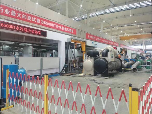 據(jù)介紹,該實(shí)驗(yàn)室最大測(cè)試能力高達(dá)6500RT,是一個(gè)能夠“一室三用”的多系統(tǒng)綜合實(shí)驗(yàn)室,主要針對(duì)大型水冷離心機(jī)、螺桿機(jī)的整機(jī)系統(tǒng)運(yùn)行、性能、可靠性等功能進(jìn)行檢測(cè)。
