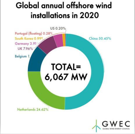 圖1 2020年全球海上風(fēng)電裝機(jī)情況