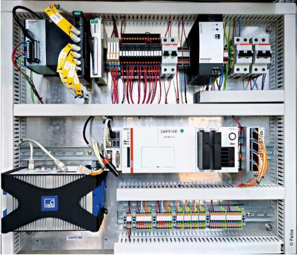 控制柜內配備 CX2000 嵌入式控制器和直接插接的 ELM 系列測量端子模塊(圖片中心)、CU8130 UPS(左上)以及PS2000 電源(右上)