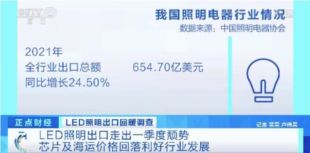 2021年,在新冠肺炎疫情對全球市場嚴重沖擊和日趨復雜的外部環境下,國內LED照明行業曾一度表現出較強韌性和增長潛力,全年出口額同比增長33.33%,雖然進入2022年,該行業也一度遭遇短暫的“失速”,不過記者調查發現,目前國內LED照明出口形勢正一改一季度頹勢,重回增長趨勢。