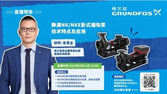 靜源NK和NKE泵現已可通過各個常規格蘭富渠道訂購,并且享受更短的交貨時間以及快速、專業的本地服務和支持。想了解更多資訊和定制選項,請掃描二維碼注冊報名2023年4月11日下午2:00的靜源NK/NKE直播課程。