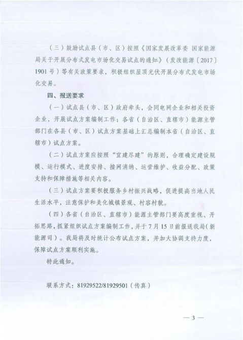 近日,國家能源局綜合司下發《關于報送整縣(市、區)屋頂分布式光伏開發試點方案的通知》。 《通知》指出,我國建筑屋頂資源豐富、分布廣泛,開發建設屋頂分布式光伏潛力巨大。開展整縣(市、區)推進屋頂分布式光伏建設,有利于整合資源實現集約開發,有利于削減電力尖峰負荷,有利于節約優化配電網投資,有利于引導居民綠色能源消費,是實現“碳達峰、碳中和”與鄉村振興兩大國家重大戰略的重要措施。 《通知》還指出了申請試點條件,要求具有豐富的屋頂資源;有較高的開發利用積極性;有較好的電力消納能力;開發市場主體基本落實,開發建設積極性高,有實力推進試點項目建設。 此外,《通知》還提到黨政機關建筑屋頂總面積可安裝光伏發電比例不低于50%;學校、醫院、村委會等公共建筑屋頂總面積可安裝光伏發電比例不低于40%;工商業廠房屋頂總面積可安裝光伏發電比例不低于30%;農村居民屋頂總面積可安裝光伏發電比例不低于20%。 原文如下: