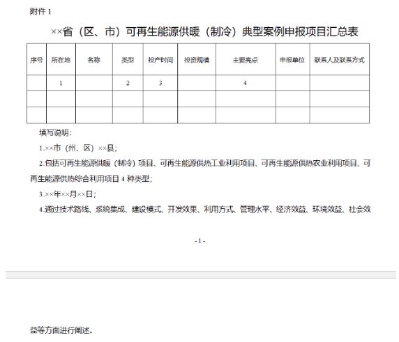 四、各。▍^(qū)、市)能源主管部門會(huì)同生態(tài)環(huán)境、住房城鄉(xiāng)建設(shè)部門于2024年1月31日前,將申報(bào)材料(一式三份)寄送至國家能源局新能源司,并同步將電子版發(fā)送至郵箱(xinny@nea.gov.cn),申報(bào)材料名稱為“××省(區(qū)、市)可再生能源供暖(制冷)典型案例申報(bào)材料”。