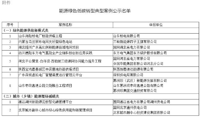 附件:能源綠色低碳轉型典型案例公示名單