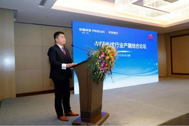 為落實碳中和戰略、發力綠色金融,3月19日,平安銀行聯合中國光伏行業協會在合肥舉辦中國光伏行業產融結合論壇,并聯合協會和平安證券發布《中國光伏行業分析及圖覽(2021)》。本次會議,共有來自國家發改委、行業協會的專家及來自大唐集團、中節能集團、云南能投、阿特斯、陽光電源、天合光能、特變電工、晶科能源、東方日升、通威集團等20余家行業頭部企業高管參會。