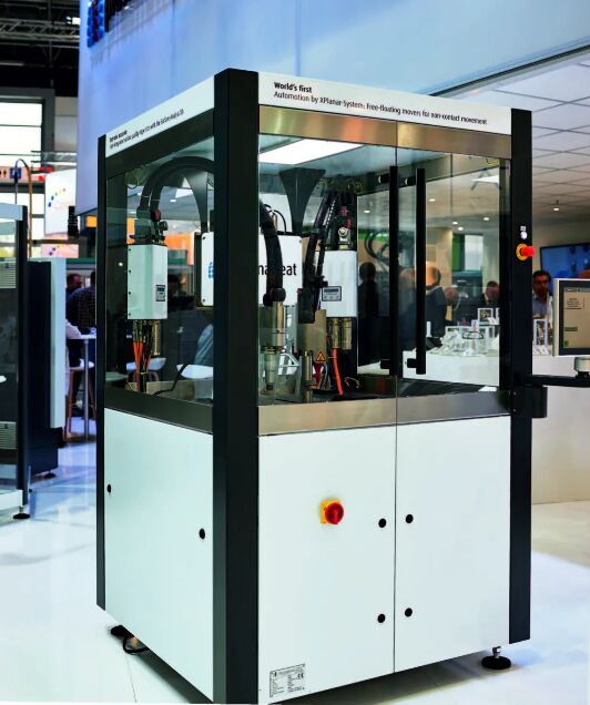 總部位于德國施泰因哈根的 Plasmatreat 有限責任公司是一家專為高效表面處理和環保生產工藝提供等離子體系統的制造商,公司在去年的 2019 年德國杜塞爾多夫橡塑展 K 展上展出了一款全新的等離子體處理裝置。該處理裝置創造性地采用了倍福的 XPlanar 平面磁懸浮輸送系統實現高精度和靈活的工件輸送。XPlanar 取代了以前用于輸送 PCB 板等敏感元件的系統,并且無需安裝復雜的六軸機器人和直線電機。 等離子體處理裝置可以將不同材料的表面處理分為兩個階段,Plasmatreat 的設計負責人 Jochen Stichling 闡述道:“在第一階段,基板被移動到噴嘴下方進行清潔和活化。在第二階段,用噴嘴噴涂功能性涂層。”他解釋,公司在這方面一直專注于創新:“我們需要一個處理速度快、完全可編程且無磨損的系統來輸送工件。而在定制化編程軌跡和行程方面,倍福的 XPlanar 平面磁懸浮輸送系統是不二之選。” 由可自由懸浮的動子組成的平面電機輸送系統 XPlanar 平面磁懸浮輸送系統將可以隨意排列的傳輸平面模塊與懸浮在其上方的動子托盤的多維定位能力完美結合于一體,可以實現快速、靈活及高精度定位。動子可以在二維平面上進行無摩擦、無接觸的運動,最高速度可達 4 m/s,加速度可達 2 g,重復定位精度可達 50 μm;運行過程中幾乎不會產生任何噪音或機械磨損。該系統不僅支持二維 X/Y 空間內的定位運動,還提供在必要時讓動子做六自由度運動的附加功能: – 最大 5 mm 的升降運動(空載), 可選擇稱重功能 – 最大 5° 傾斜運動,用于處理液體的輸送 – 最大 ±15° 的旋轉或者在特定傳輸平面模塊上 360° 的旋轉; Plasmatreat 等離子體表面處理設備中使用的 XPlanar 輸送系統由 6 個 240 x 240 mm 的平面模塊和 1 個動子托盤組成。