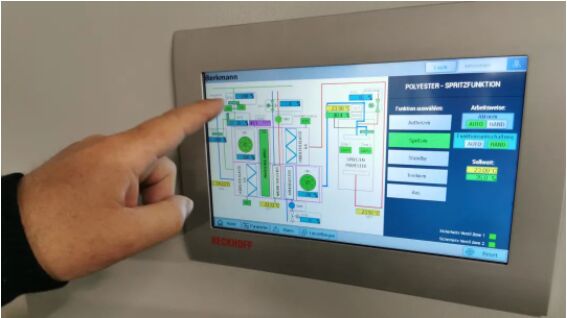車間通過噴漆室外的 CP690x 控制面板進行控制。可視化則通過基于 HTML5 的 TwinCAT HMI 軟件實現。通過這種網 Web 技術即可在公司內使用任何一臺 PC 或移動設備通過簡單的 Web 瀏覽器訪問車間。噴漆技術員可以從預安裝功能中進行選擇,整層的照明可以通過倍福面板控制。同時還整合了報警和趨勢記錄,用于實現優化和執行噴漆車間維護等任務。操作人員也可以對噴漆過程直接進行干預,相比之前的車間有著巨大的優勢。