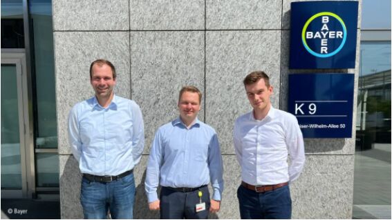 項目團隊:拜耳生產計劃工程師 Roger Rossmann 博士(中)與來自倍福流程工業部門的 Lennart Winkler(左)和 Sebastian Böse(右)