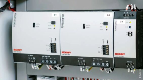 倍福 PS 系列 DIN 導軌安裝式電源確保為安裝有 EtherCAT 插拔式模塊的信號分配板供電