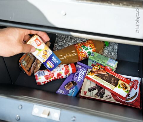Zinu Shop 是一家自助式便利店,提供與傳統便利店類似的商品種類,并且全年無休(法定節假日除外)。實現這一目標的前提是總容量足夠大(300 至 400 個存儲空間)和高可靠性,而這兩者都是獲得消費者信任的關鍵。該商店位于一個長方體保溫隔熱外殼內,該外殼也可用于存放需冷藏的產品,無論外部天氣條件如何都能保持恒溫,甚至還可容納廣告燈箱、包裹儲物柜和咖啡機等。該項目最重要的特點之一是采用了多種產品混合分裝方案,將 3D 打印技術與傳統的自動售貨機相結合。因此可以售賣幾乎任何類型的商品:從棒棒糖或香料包等小而精致的商品,到紙巾或土豆等大包裝商品。