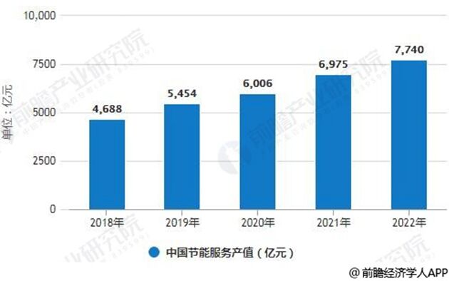 數(shù)據(jù)來源:前瞻產(chǎn)業(yè)研究院整理 2018-2022年中國節(jié)能服務(wù)產(chǎn)值統(tǒng)計(jì)情況及預(yù)測